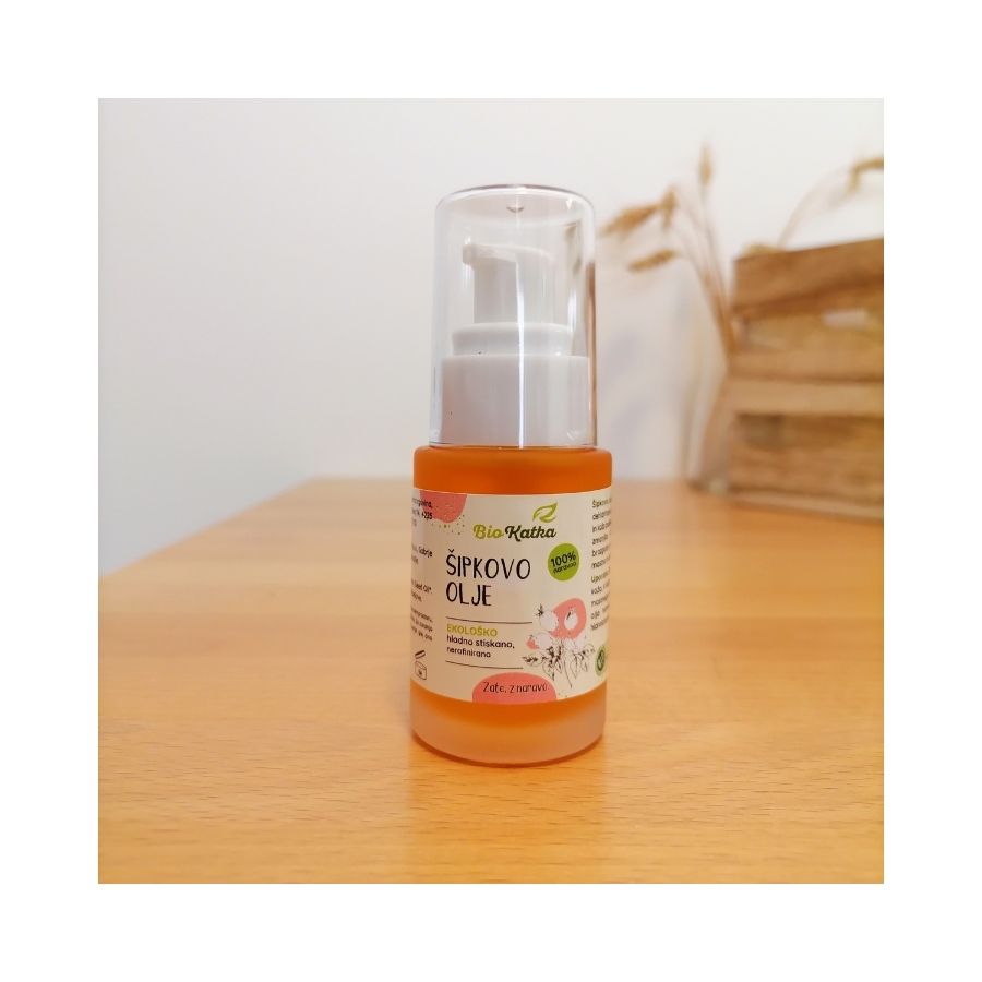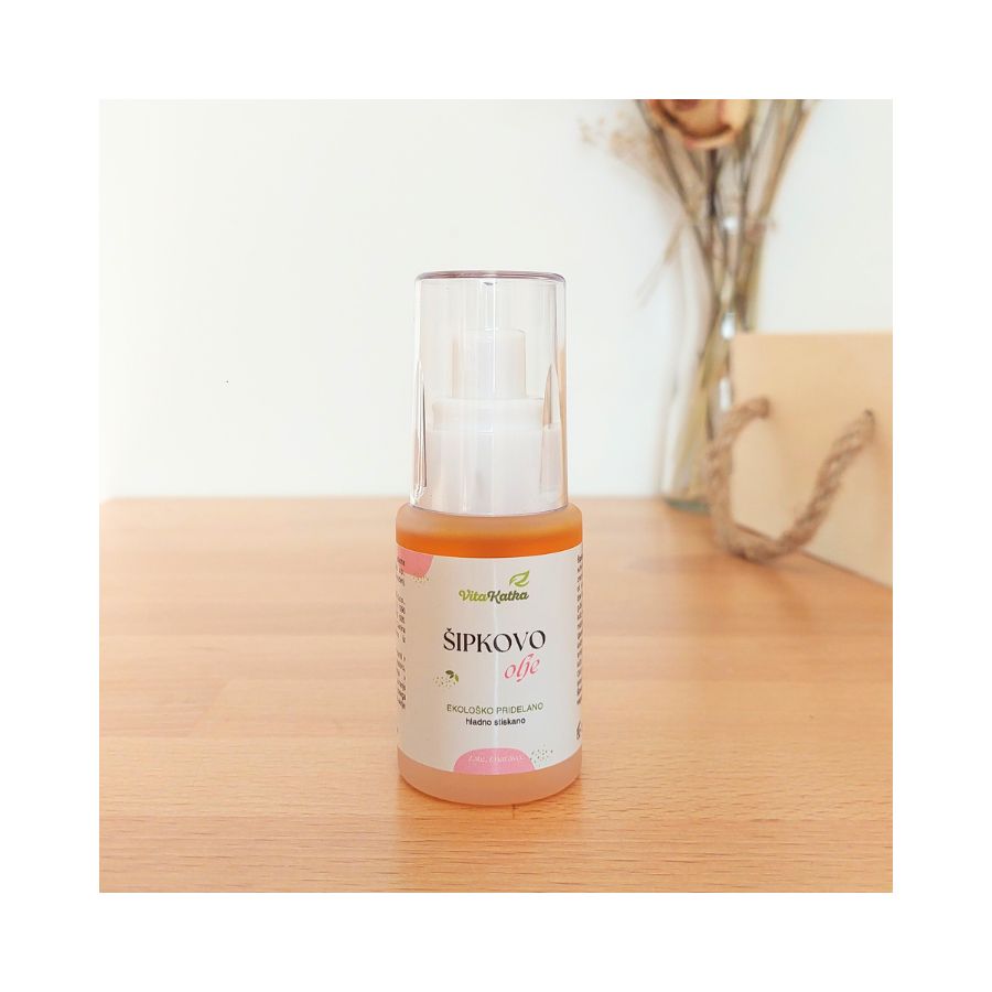 - Šipkovo olje iz ekološke pridelave se hitro vpije v kožo in ne pusti mastnega občutka.