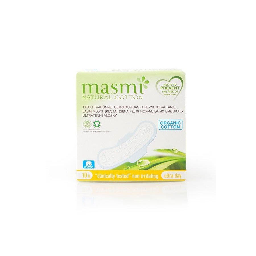 Ultra tanki vložki s krilci – dnevni Masmi so tanki, udobni, diskretni in izdelani iz 100% ekološkega bombaža.